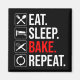 Coma. Durma. Assar. Repita. Esta citação engraçada de cozinhar é um presente de excelente para um homem, mulher, adolescente e criança que adoram assar na cozinha. Também perfeito para um padeiro ou um trabalhador de padaria. Se você é um padeiro doméstico, ama as artes culinárias, e adora preparar um pão delicioso, biscoitos, muffins, bolos ou cupcakes no forno, então esse design humorístico é para você.
