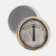 Um gabarito da placa de um trem a vapor lendo libras por polegada quadrada.