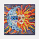 Pintura de aquarela original de Sandra Gale, com duas máscaras que representam o sol e a lua. Essas máscaras, cada uma com suas tradicionais combinações de cores; azul-frio, roxo e prata para a lua e vermelho-quente, laranja e ouro para o sol. Essas máscaras vestem o sorriso e a testa das máscaras de teatro estilo Comédia e Tragédia e estão cercadas por corpos celestes como estrelas e planetas. Este é um design excelente para amantes de teatro, atores, crianças e adultos ou qualquer pessoa que ame astrologia, temas do sol e da lua e, em geral, tipos de máscaras festivas do partido Mardi-Gras.