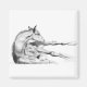 Uma ilustração BIRO preto e branco de um jovem potro deitado, então percebe que ele precisa alcançar uma comichão na perna traseira. Pelo artista de BIRO, Robin Cox.