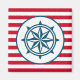 Design náutica com decoração de bússola em fundo listrado vermelho e branco