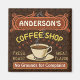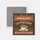 Este ímã quadrado temático de café é perfeito para quem dirige seu próprio compro de café ou tem um tema de café em sua decoração na cozinha da casa. Feito em castanho, laranja, bege e amarelo, este design de inspiração/espresso apresenta uma xícara em um disco, duas banners de texto personalizados e as palavras "Compro de café / Floresta fresca / Sabor de Excelente" em amarelo. A caneca está a vapor e a faixa de cima tem espirais que imitam a fumaça. Tudo repousa sobre um fundo escuro de grãos de café. Use as modelos para adicionar seu nome facilmente. Você também pode mudar o slogan inferior se quiser, que atualmente lê, "Sem Motivos para Reclamação." Se precisar redimensionar o texto para o ajustado, clique em "Personalizar." Pegue uma xícara de Joe e aproveite seu ímã de café personalizado.