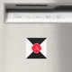 Padrão geométrico preto, vermelho e branco com decoração monográfica