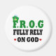 Confie totalmente em boa design com um sapo verde sentado na palavra sapo.