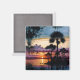 Linda imagem de aquarela do pôr do sol sobre um baú. Há poucas coisas mais mágicas do que um pôr do sol colorido sobre a água.