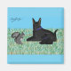 Mister Squirrel em conversação profunda com German shepherd pretos de pop e filhotes.