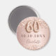 Ímã elegante, clássico, glamoroso e feminino para salvar a data de uma festa de 60 anos. Fundo gradiente rosa ouro e blush. Decorado com brilho falso, faíscas em rosa ouro. Personalize e adicione um nome. O nome é escrito com uma fonte de letra manuscrita moderna em cor de rosa escura. O número 60 é escrito com uma fonte estilo balão.