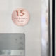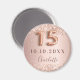 Ímã elegante, clássico, glamoroso e feminino para salvar a data de uma Quinzeañera, festa de 15 anos. Fundo degradê rosa ouro e rosa. Decorado com rosa ouro, brilho falso, faíscas. Personalize e adicione um nome. O nome é escrito com uma fonte moderna de letra manuscrita em cor de rosa escura. O número 15 é escrito com uma fonte estilo balão.