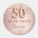 Ímã elegante, clássico, glamoroso e feminino para salvar a data de uma festa de 50 anos. Fundo gradiente de rosa ouro e blush. Decorado com confetes de rosa ouro e brilhos. Personalize e adicione um nome. O nome é escrito com uma fonte moderna de letra cursiva em cor de rosa escura. O número 50 é escrito com uma fonte estilo balão.