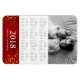 Este na moda e um ímã de calendário moderno apresenta uma faixa de aquarela que parece vermelha e esmalte de ouro embaixo, com sua foto pessoal no topo. Adicione seu nome usando o modelo para torná-lo seu.