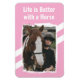 Adicione um pouco de charme ao seu frigorífico ou armário com este ímã flexível de 4" x 6"! Apresentando a frase sincera "A vida é melhor com um cavalo" (mas sinta-se livre para trocar nas suas próprias palavras favoritas), é o presente personalizado perfeito para amantes de cavalos ou qualquer pessoa que queira um momento magnético de alegria. Carregue sua própria foto para torná-la realmente sua. Este ímã personalizado traz personalidade e sorri para onde quer que ele grude. Excelente para casa, escritório ou doação! Branco / Rosa