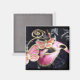 Uma máscara de gras cor-de-rosa e dourada com borboletas ao redor dos olhos. Este ímã é perfeito para qualquer refrigerador.