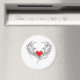 Coração vermelho pintado artificialmente com cinza de asas de anjo, decorado com contorno liso preto.