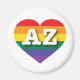Este ímã apresenta um coração com design do orgulho arco-íris e as letras maiúsculas, brancas e ousadas AZ, a abreviatura oficial de Arizona, o estado do Grande Canyon. Mostre suas cores verdadeiras, apoie a igualdade do casamento e comemore a orgulho gay.