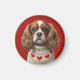 Um adorável Cavalier Spaniel, num pulôver de malha de lã com corações de amor.