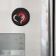 Coração de metal com crista vermelha sobre fundo preto. Pronto para ser personalizado com o seu texto.