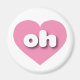 Este ímã apresenta um legal e calmo coração cor-de-rosa contendo as letras maiúsculas, azuis, redondas, minúsculas, oh, uma abreviação lúdica para Ohio, o estado do buque.