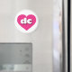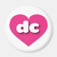 Este ímã apresenta um coração cor-de-rosa-quente vibrante contendo as letras maiúsculas em negrito, branco, arredondadas dc, uma abreviação lúdica para o Distrito de Colúmbia.