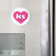 Este ímã apresenta um coração cor-de-rosa quente vibrante contendo as letras maiúsculas, brancas, em negrito, arredondadas, uma abreviação lúdica para Kansas, o estado do girassol.