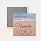 Dois corações entrelaçados em uma praia arenosa com uma letra de script para sempre. Design para o casal de casamento de destino. ________