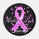 Uma bela fita cor-de-rosa com flores, corações, borboletas e as palavras positivas de "Esperança de amor, coragem, consciência do Cancer da mama" para apoiar a consciência do Cancer da mama.
