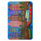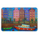 Uma vibrante e animada cena noturna estilizada das casas coloridas e estreitas de Amsterdã, ao longo dos canais, em um ímã flexível por Lisa Lorenz