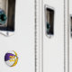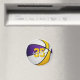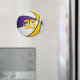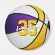 Este ímã legal do tema basquetebol apresenta a imagem de uma bola de basquete realista com painéis coloridos roxos, brancos e dourados alternados - facilmente personalizados com o nome do atleta & número de camisa - por katz_d_zynes
