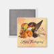 Magneta quadrada com a imagem de uma cesta de cornucopia marrom esvoaçada que transborda com uma variedade de pratos, milho e flores amarelas em laranja e amarelo e "Ação de Graças Feliz" em escrita marrom. Veja o ímã de escultura de fotos acrílicas correspondente. Veja toda a coleção de Mágulos de Ação de Graças na seção HOLIDAYS.