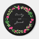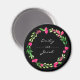 Coroa floral rosa elegante Ímã com o nome do casal com fundo preto. Personalize este modelo para adicionar suas informações. Clique para personalizar ainda mais para fazer mais alterações. Contate Sandy em admin@giftsyoutreasure.com
