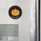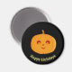 Cara de abóbora bonita em um ímã plano de fundo preto. O texto pode ser personalizado.