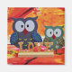 Surpreenda o seu amado com estas duas corujas bonitinhas num fundo laranja com o texto "amor".