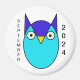 Imaginem um pequeno ímã redondo com um fundo branco limpo. No centro está uma coruja azul vibrante, suas penas ricas com diferentes tons de azul, do cobalto profundo ao azul-céu mais claro. A coruja tem olhos grandes e piercing que lhe dão um alerta e uma expressão sensata. Suas asas estão bem encaixadas em seus lados, enquanto pequenos detalhes, como manchas brancas ou acentos azuis mais leves, decoram seu corpo, adicionando textura. O bico da coruja é afiado e pontiagudo, possivelmente uma cor contrastante como laranja ou preto, destacando-se contra o legal blues. Seus pés são pequenos, descansando suavemente sobre a superfície branca do ímã. O design geral é simples mas impressionante, com o contraste entre a coruja azul e o fundo branco criando um visual charmoso e atraente.
