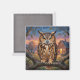 Um ímã que apresenta uma impressionante coruja-grande, reproduzida num estilo rico e espesso de pintura a óleo impasto. As texturas vibrantes e o fundo quente do pôr do sol criam uma atmosfera aconchegante e rústica que é perfeita para os amantes da natureza e entusiastas da arte.