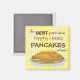 Imã de geladeira engraçada e fofa para amantes de panquecas com uma pilha de panquecas e a verdade de que o melhor para uma panqueca é mais panquecas...e xarope.
