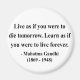 "Viva como se você fosse morrer amanhã. Aprenda como se você fosse viver para sempre." - Mahatma Gandhi