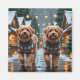 This festive design captures the joyful spirit of the holiday season, featuring an adorable dogs.Nestled in a winter wonderland, complete with a decorated Christmas tree, and beautifully wrapped presents. Snowflakes gently fall, adding a magical touch to the scene, while the vibrant colors of the holiday decorations create a warm and cheerful atmosphere.