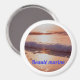 A breathtaking golden hour photograph capturing a foamy wave gently washing over a small seashell on a sandy beach, bathed in warm sunset light. The reflections of gold and copper on the wet sand create a magical and poetic atmosphere, paired with the French caption "Beauté Marine" (Marine Beauty).