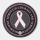 Iconic pink ribbon symbol of breast cancer awareness. Motivational message for strength and solidarity. Faux Glitter accents for visual impact and elegance.