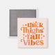 Este vibrante e divertido design de outono apresenta a frase divertida e confiante "Thick Thighs Fall Vibes" em uma fonte ousada e inspirada por retratos. O texto é organizado em um layout dinâmico, empilhado, com cada palavra preenchida em tons quentes de outono, incluindo tons de laranja, pêssego e rosa suave. As faíscas em torno da estrela somam um toque de reluzente e brilho, melhorando o sentimento festivo e aconchegante da design. A tipografia é ousada e curventa, dando a ela um apelo vivo e vintage que capta perfeitamente a essência do outono.