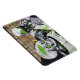 seus olhos verdes ficam longe, surpreendidos com o desenho do excelente feito por um artista desconhecido - mas devem ser estranhos a natação numa caneca