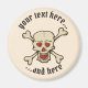 Esboço de desenho do crânio bege com corações. Dois campos de texto em círculo.