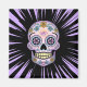 Crânio roxo do Dia de los Muertos com flores, coração e diamante.