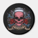 Crânio de pirata e bósforos com boné de enfermeira, rosas, raios, esplendor e "Tender Loving Care" em uma faixa de rolagem. Desenho de tinta com cor digital, em t-shirts, suores, canecas, botões, bolsas, presentes.