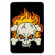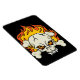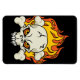 Crânio e bósforos com presas e muitas chamas coloridas.