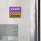 Crânios góticos decor de cozinha roxa de ouro. Ímanes de máquina de lavar louça suja e suja, de cor branca e preta. Legal design de na moda de Dia das Bruxas. Imagem copyright Marg Seregelyi Fotografia.