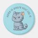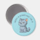 Imã Cranky Grey Tabby Cat Custom Text Blue