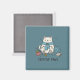 Showcase your passion for creativity and cats with this 'Creative Paws' magnet. A charming white cat, adorned with a soft blue scarf, is enthusiastically knitting with a basket of yarn. The artistic details, including a palette and notebook, highlight the joy of handmade creations. This unique design is perfect for anyone who loves knitting, cats, and adding a splash of cute, artistic flair to their everyday surroundings.