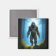 Sasquatch do Pé Grande caminhando na floresta entre o ímã dos pinheiros altos.