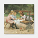 Esta design apresenta uma pintura do artista francês Victor Gabriel Gilbert (1847-1933). Mostra crianças fazendo piquenique em um parque de Paris. Há duas garotas e um menino. As crianças estão sentadas em ambos os lados de um banco; uma garota está deitada sobre ele. Eles têm uma toalha de mesa e estão comendo cerejas e bolo. Eles têm até uma garrafa de azeite. Há flores crescendo no parque atrás delas. É uma cena doce de crianças se divertindo e agindo como adultos.