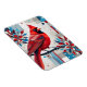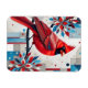 A striking fusion of realism and abstraction, this design features a vivid red cardinal perched gracefully amid a symphony of geometric petals and modern motifs. The lifelike feather textures and bold red hues contrast beautifully with layered floral patterns in red, white, and blue, creating a dynamic interplay of nature and design. Perfect for apparel, prints, and accessories that celebrate elegance, freedom, and artistic flair.
